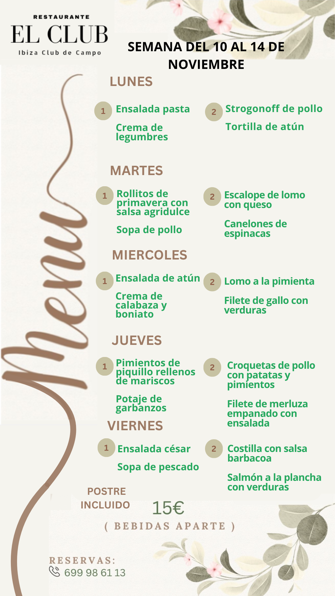 • 09/11/2025 MENÚ SEMANAL DE 10 A 14 DE NOVIEMBRE