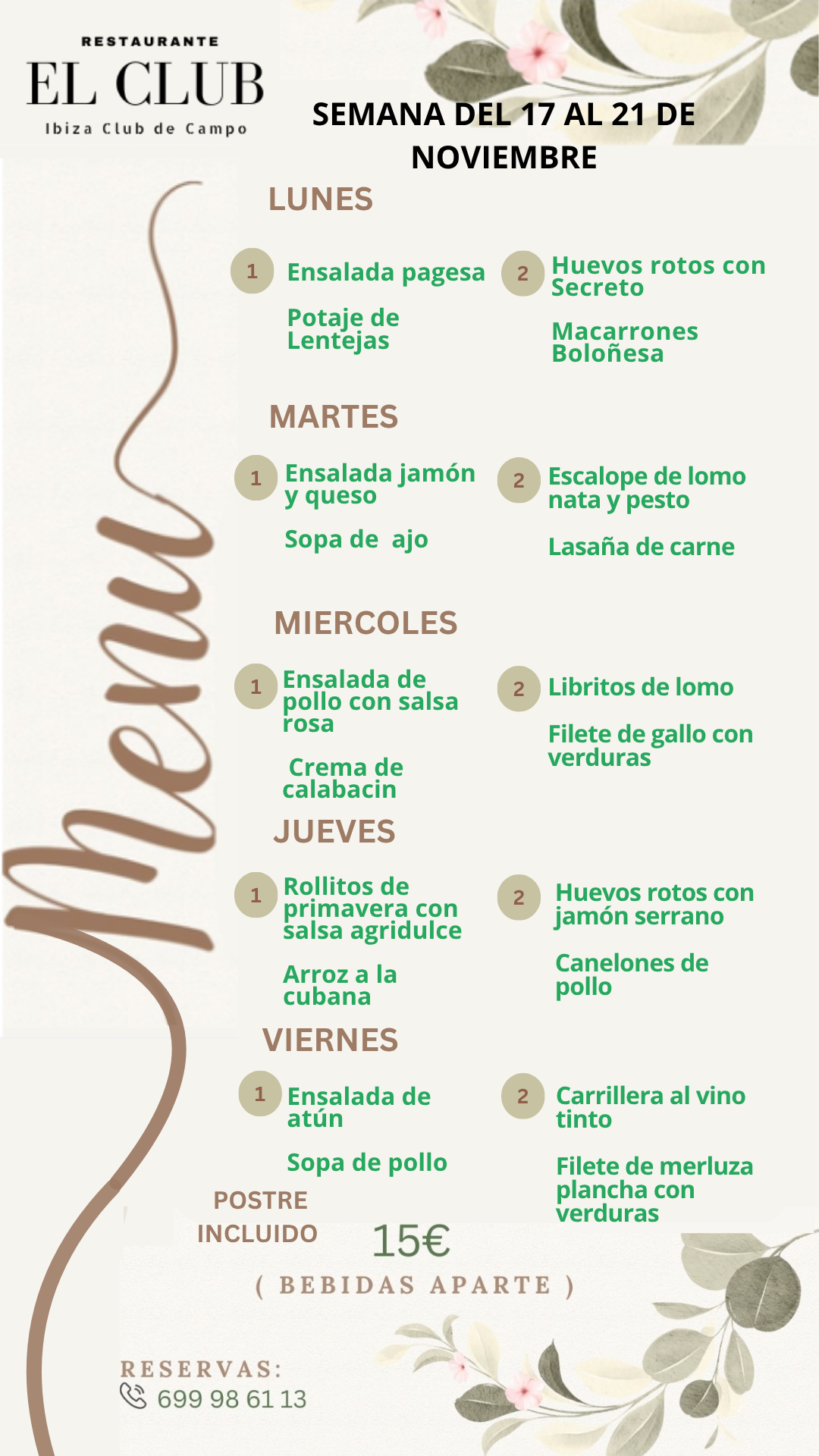 • 17/11/2025 Menú Semanal del 17 al 21 de Noviembre